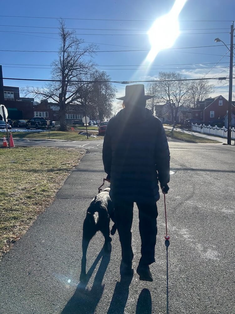 How would you describe your guide dog? “He has been absolutely amazing! This was the longest time I’ve gone without a guide dog. My trainer, Kat Poallo, knows me very well and was keeping an eye out for the right fit. She just knew he was for me. I wanted a tall dog because I am 5’9″ and he is 82 lbs. He gives me confidence with his sturdy gait. He has a good pull, and we are completely tuned into each other. When I picked up the harness, it was great! One of my previous guide dogs, Gregg, was the same way; amazing from the time we picked up the harness. However, it’s important to know that even with a perfect fit, sometimes you’ll need to work on something. I’ve had to ask for help every time my vision has shifted. Even Gregg didn’t like to back up, and one of the trainers taught me how to get him to do that. If we allow ourselves to become stressed about something, the dog will feel that down the leash, so don’t ever be afraid to ask for help!”