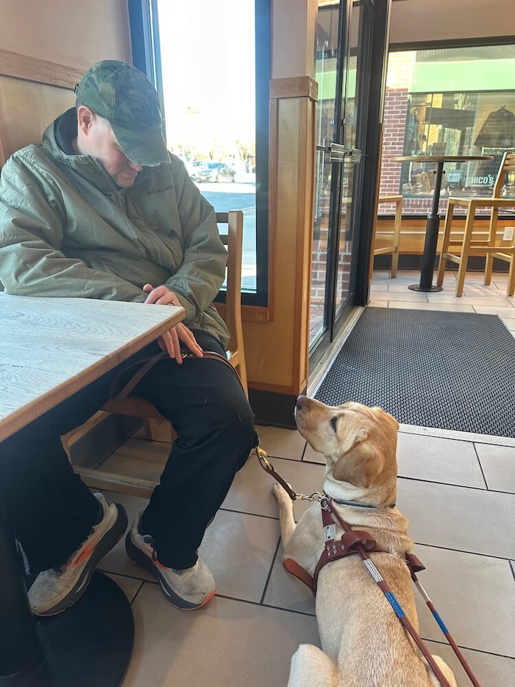 How would you describe your guide dog? “Lucia is a wiggle butt. She is an amazing guide dog. I take both public transit and paratransit to/from work, and Lucia handles that wonderfully. She is very smart. At a recent military funeral, there was a 21-gun salute. Lucia did fine without getting startled at the loud noise.”
