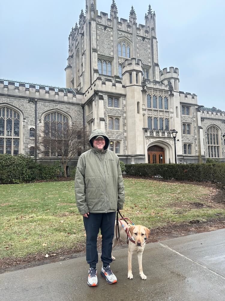 What made you decide to apply for a guide dog from Guiding Eyes? “I was looking into the top schools for guide dogs. I like the services that Guiding Eyes provides. The training covered everything, including taking buses, the train, and walking around busy areas.”