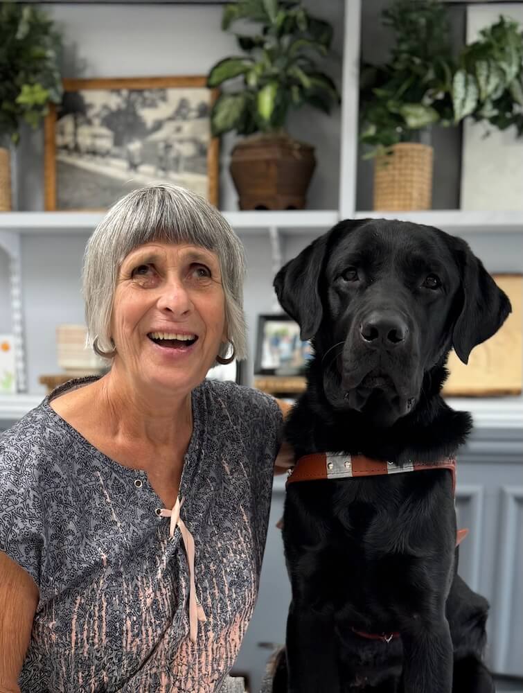 About the Team: Everley – a male black Lab, is Debbie’s 3rd Guiding Eyes dog