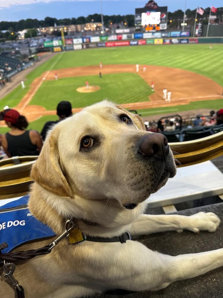 About the Team: Gandalf, a yellow male Lab; Debra’s 3rd guide from Guiding Eyes