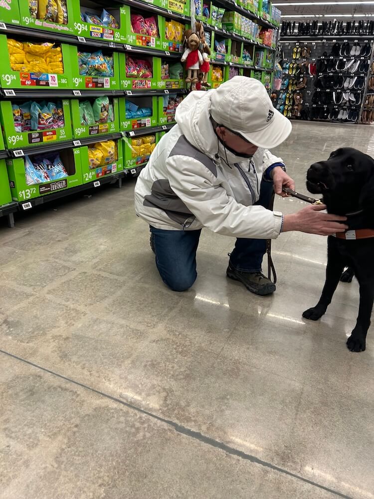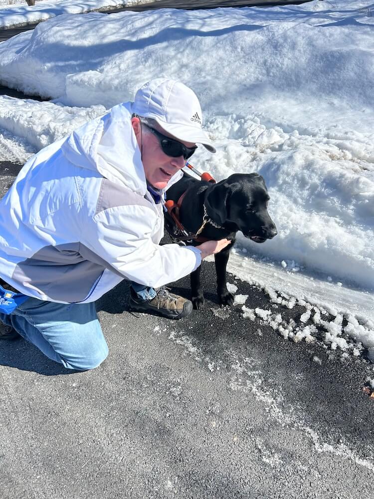 About the Team: Deirdre is a female black Lab; Doug’s 1st guide dog