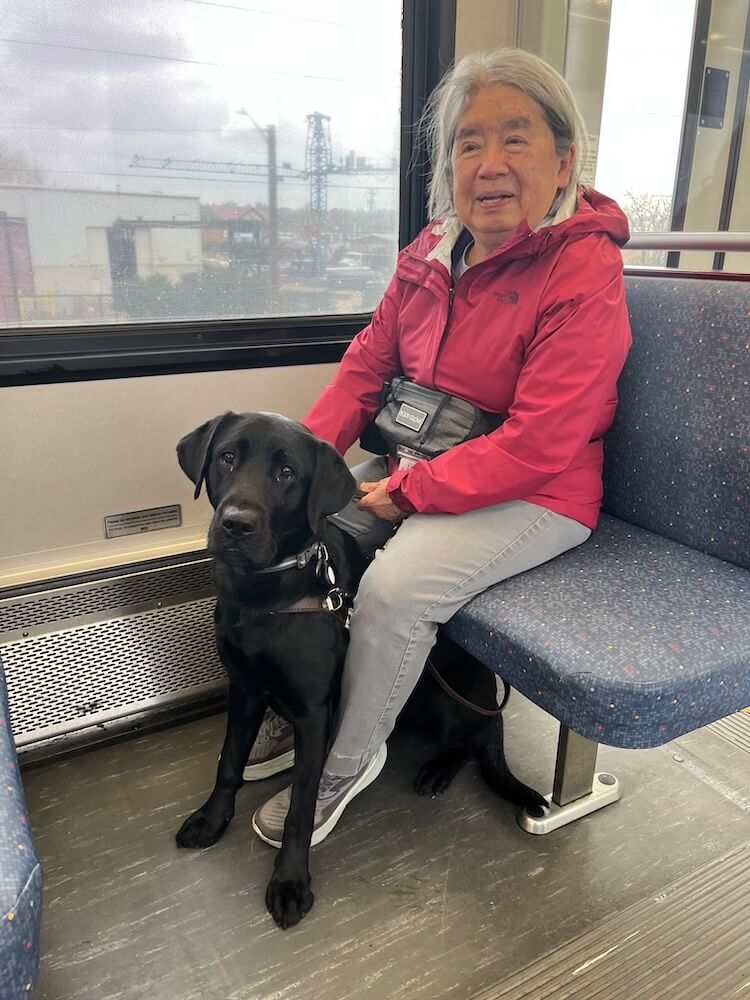 How would you describe your guide dog? “Quinoa is very calm for a 2-year-old. She is very smart and works very well in harness. Around Denver, Quinoa and I travel by bus, Uber, paratransit, and light rail. At home, she is very good when in the house and enjoys going outside to sniff and discover who else might have been in the yard.”