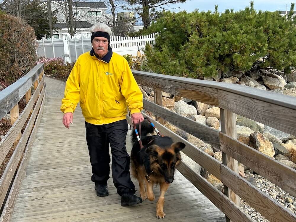 How has having a guide dog impacted your life? “After relying on a cane successfully for 31 years, I decided to apply for a guide dog. A guide dog would better fit my lifestyle. They have provided me with more independence, and in my younger days, enabled me to walk Maine’s local beaches early in the morning.”