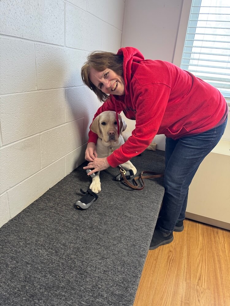 Were there any training highlights? “Quinnah has a different step, a different cadence, but we are both anxious to get to know each other better. With Alvin, I had 3 weeks of training, but with Quinnah, I had a 2-week class. The first week, the weather was cold but clear. The second week, it snowed, so we were not able to do as much outdoor walking. On follow-up training at home, the regional instructor worked with us on a very challenging route and commented that if we can do this walk, we can do anything.”