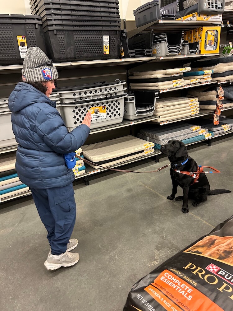 Were there any training highlights? “Home training was a different experience from being at the Training School with other students training at the same time. With Glenn being a new dog, there’s a new mix of anxiety and excitement going into training with him, because each dog is so different from the others. Training with Kathy, one thing that stuck out was the day it was snowing while we walked, and it had snowed the day before, too. Glenn gave me confidence in that moment, in how he could handle it because it wasn’t a big deal for him, despite the curbs being hidden. There weren’t any hiccups, and I thought it was a good sign since it’s the middle of winter. It was a confidence booster for us as a new team, seeing how he would handle situations like that going forward. I remember thinking we are going to be ok, whatever our New England weather brings us.”