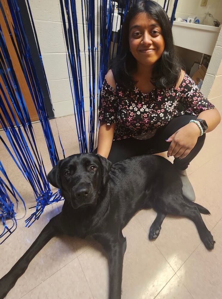Glenn is a smart, goofy boy who aims to please. Throughout raising, he impressed us with his improvements as he got older. Through his love of benebones and rope toys he continued to improve his skills relating to becoming a working dog and learning commands, handling challenges while letting his personality shine. Raising taught us how to help Glenn gain confidence, learn about the world fostering his drive. Raising him taught us perseverance as he helped us learn how best to support him as he got older. A message we have to the guide dog team is we hope you both enjoy all the goofy little moments Glenn is sure to have and his eagerness to do great work! ~ Megha Talanayar