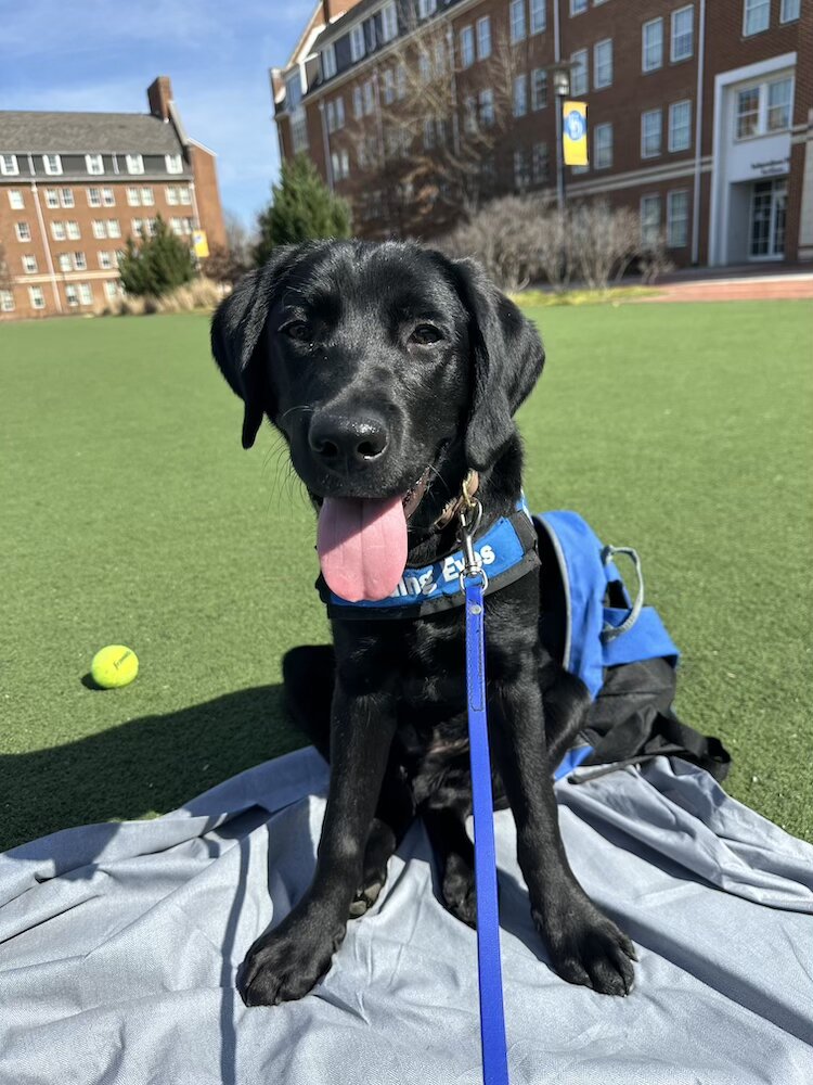 How would you describe your guide dog? “Glenn at first seems a mix of curious, cautious, and playful. When he is playing outside in the backyard, his favorite toy is a rubber football, and I joke that he could be a wide receiver because I throw the football and he runs long for it. He was initially careful or uncertain, but the more comfortable he gets, the more he comes out of his shell and plays. He engages, not just with me, but with friends and family, and it’s rewarding to see the adjustment. Workwise, he is doing well, and as we keep working, I think our confidence in each other is growing, and for me, it is also getting easier to read him.”