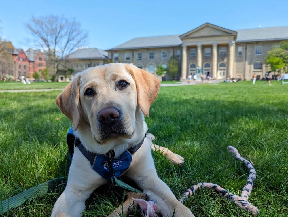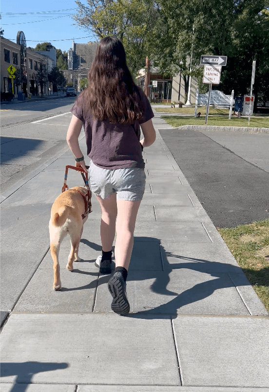 Were there any training highlights? “The biggest thing was how quickly she figured out the routes. As part of the training, we went to Vassar College, and the campus setup is pretty similar to my college. I was with my instructor, Dan, and we were crossing a route that’s similar to mine. She picked it up on the second try. I could hear that Dan was impressed when she stopped at the right places. I was impressed by that too, and by how happy she is to work when the harness is on.”