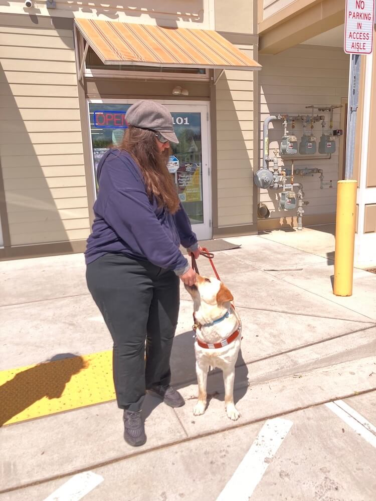 How would you describe your guide dog? “He is a lovable, adorable dog. Donovan’s love language is touch and he is a huge snuggler. He sometimes gets himself into the strangest sleeping positions. During training at a restaurant, he once rolled over onto his harness and lay there for over 10 minutes. Donovan is curious about the world around him, and he watches things. He can also be quite mischievous when it comes to scavenging. If he were a person, he would be a happy-go-lucky surfer dude.”