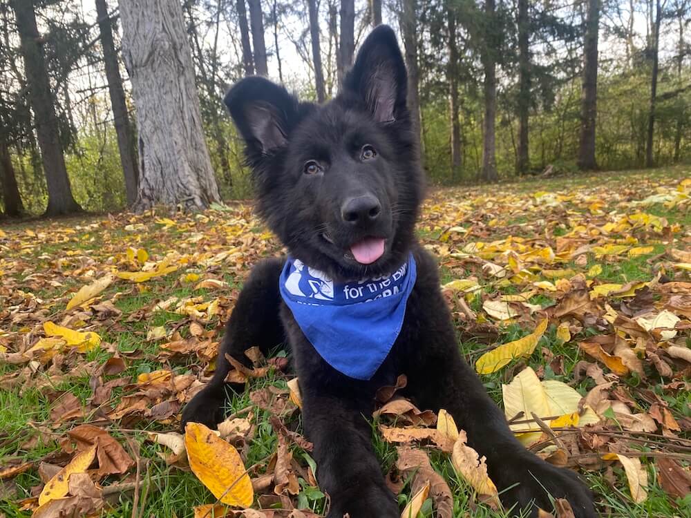 About the Team: Angel – a male, black German Shepherd; Shelby’s 2nd Guiding Eyes dog